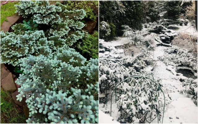 Кроме того, различные виды спиреи японской и компактных барбарисов наполняют нижний ярус композиций. Из хвойных невысоких растений я выбрала ели Глаука глобоза и Нидиформис, туи Даника и Умбракулифера, даже метельчатой гортензии нашлось место, но только компактному сорту Сноу Саммер.