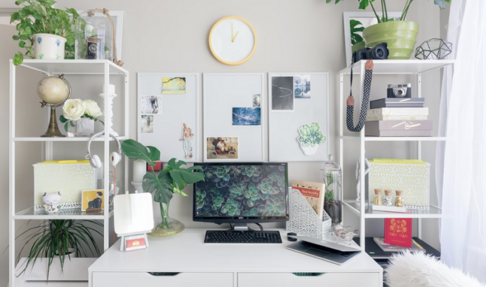 Когда после праздников из квартиры исчезает новогодний декор, она кажется непривычно пустой и серой. Заставить себя сесть за лаконичное и строгое рабочее место очень сложно. Поэтому добавьте в эту зону немного ярких цветов и ощущение праздника. Подойдут настенные украшения, красивые аксессуары для хранения канцелярии, ваза с цветами, гирлянда. В течение года этот декор полезно менять местами и обновлять мозг привыкает даже к чему-то яркому, поэтому время от времени нужно давать ему ощущение новизны, чтобы не терять интерес.