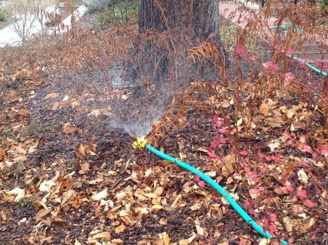 Этот способ подходит для любого участка и считается наилучшим. Чтобы не покупать специальную систему орошения, поливать деревья таким способом можно с помощью проколотых в разных местах шлангов. Их нужно подключить к водопроводу или соединить с основным шлангом и уложить кольцом по краю приствольного круга.
