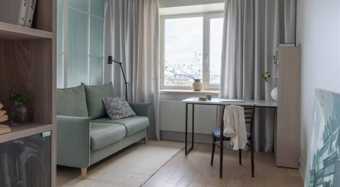 Владельцы этой квартиры в одном из жилых комплексов Санкт-Петербурга семейная пара. Жилье планировалось для временного пребывания, связанного с работой в городе, но с перспективой жизни здесь старшего сына. На небольшой площади хотелось обустроить спальню, зону приема гостей, рабочие места. Для этого хозяева пригласили дизайнера Светлану Куксову.
