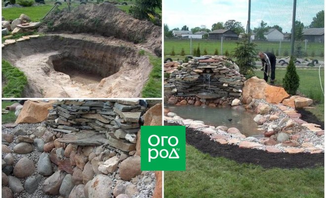 С водопадом пруд будет выглядеть более эффектно. Основание каскада сформируйте из выкопанной земли, на нее насыпьте песок или постелите мягкую ткань, а поверх – ту же черную пленку. У подножия водопада положите большой плоский камень. На него будет стекать вода и красиво разбрызгиваться.