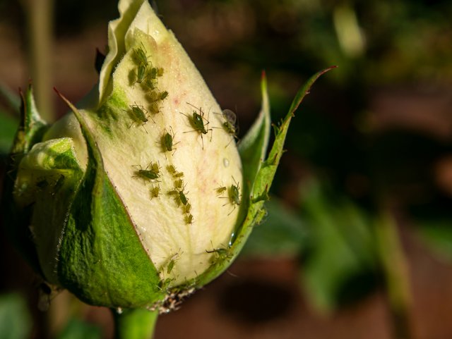 Борьбу с вредителями важно вести не только в силу того, что они доставляют неприятности вашим розам, но также и потому, что эти создания распространяют некоторые опасные заболевания, о которых мы уже рассказали выше. Часть вредителей (например, клещи или трипсы) в основном активизируются в жаркую и сухую погоду. Но поскольку иммунитет растущих в тени роз ослаблен, растения рискуют быстрее погибнуть даже от самого небольшого причиненного им вреда. Поэтому прежде всего важно обеспечить розам профилактику. Она заключается в регулярном (раз в неделю) осмотре растений и соблюдении графика профилактических обработок биологическими инсектицидами (Битоксибациллин, Фитоверм).