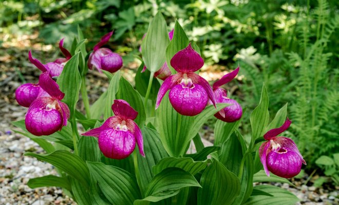 Пожалуй, самыми требовательными садовыми орхидеями можно назвать венерины башмачки, и особенно подвид циприпедиум настоящий. Всем растениям этого вида нужна щелочная почва и рекомендовано добавление в грунт известкового гравия (в качестве дренажа или мульчи). И если собратья смогут мириться с отсутствием такой добавки, то башмачок настоящий в таких условиях проживет лишь пару сезонов.
