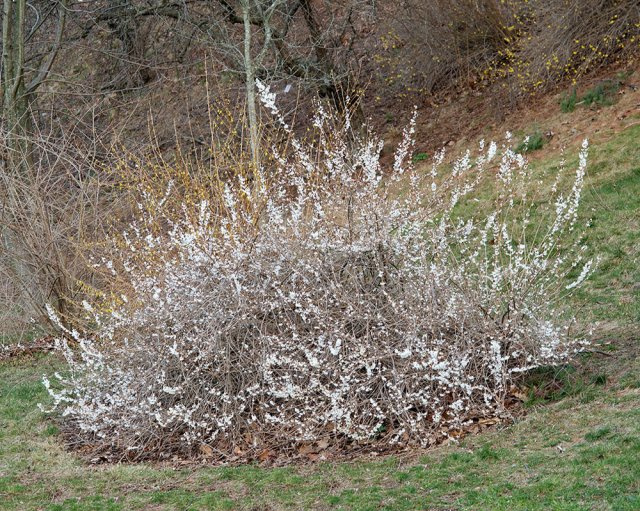 Форзиция снежная, или белая / Forsythia abeliophyllum | Несмотря на свое название, морозостойким этот вид форзиций не назовешь |