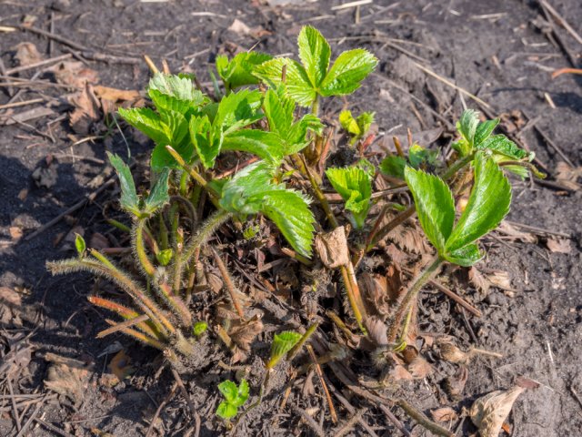 Время посадки клубники выбирайте, ориентируясь на температуру окружающего воздуха: она должна держаться на отметке выше 10°С. Если вы опасаетесь возвратных заморозков, можете укрыть молодые кустики пленкой или спанбондом.