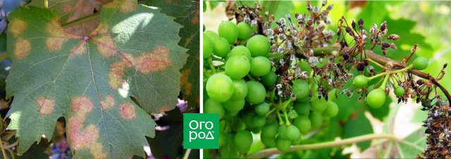 Большой вред винограднику приносит мучнистая роса винограда, которая называется оидиум. Болезнь поражает побеги, листья, цветки и ягоды, захватывая не всю кисть, а отдельные ее части.