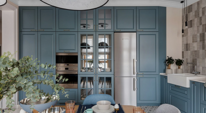 Такая цветовая гамма достаточно универсальна. Она подойдет творческим личностям, бизнесменам, тем, кто много работает дома, просто ценителям элегантного комфорта. Восприятие интерьера при этом может быть абсолютно разным в зависимости от того, с какими цветами сочетается темно-синий цвет или его более светлые оттенки. Ему найдется место как в современных, так и в классических направлениях.