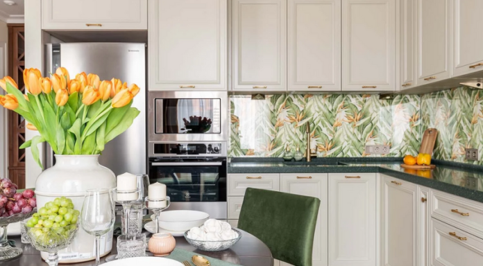 Модные тенденции-2023 обоев для кухни включают в себя не только цвета и орнаменты, но и то, как отделка применяется в интерьере.