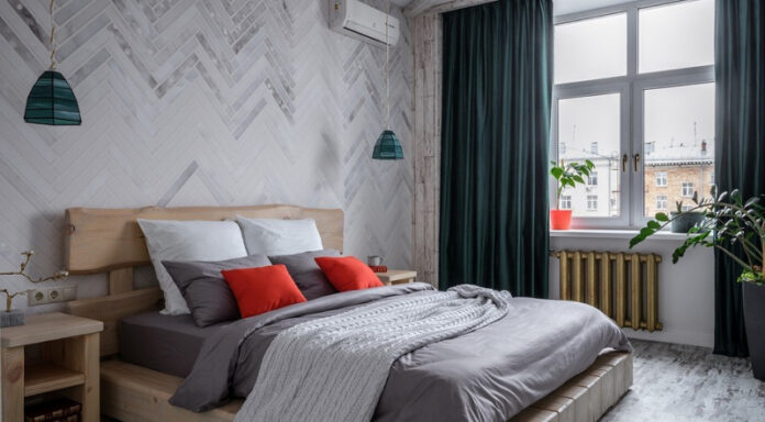 Для оконного текстиля эта тенденция выражается в простых лаконичных формах. Вместо сложных драпировок и объемных рюш прямые портьеры или аккуратные римские шторы из качественных экологичных материалов. Если хочется сделать акцент на окнах, используйте более насыщенные и глубокие оттенки.