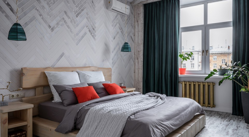 Если хочется добавить помещению яркости, используйте акцентный оконный текстиль, но обязательно повторяйте этот цвет еще в каких-то деталях: например, в постельном белье, декоре, ковре, элементах отделки.