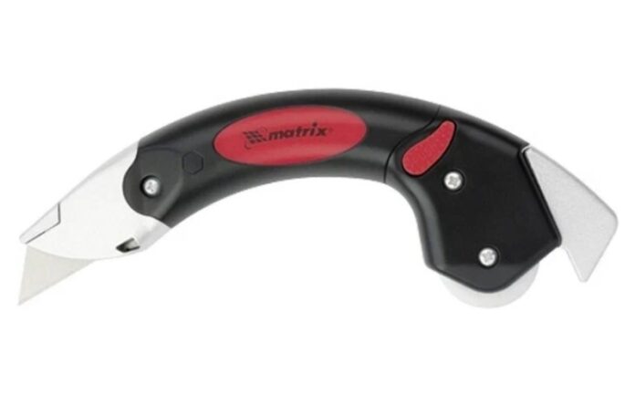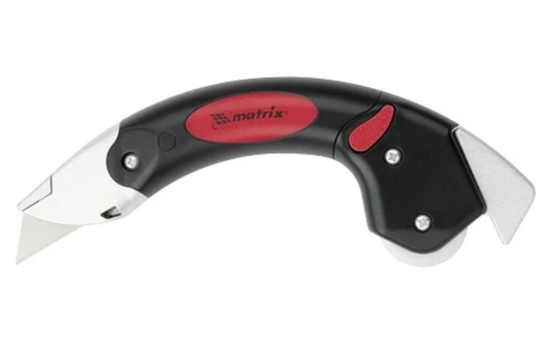 Лучший для напольных покрытий — Matrix 78979. Оснащен алюминиевым направляющим роликом, который обеспечивает точную и быструю работу. Лезвие надежно фиксируется магнитным держателем, что гарантирует стабильность линии реза. Подходит для ремонтных и кровельных работ, а также для использования в быту.