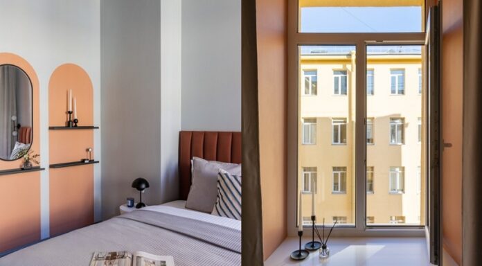 Мне хотелось создать интерьер, который повышает настроение, привносит в жизнь яркие краски и теплоту, поэтому получился современный стиль с элементами неомемфиса. Для неомемфиса характерны обилие цвета и цветовых комбинаций, колорблокинг расположенные рядом цветовые блоки в виде разнообразных геометрических фигур (в моем интерьере это коралловые арки). А в санузле я использовала еще один ключевой элемент неомемфиса керамическая плитка с принтом терраццо с разноцветными вкраплениями.
