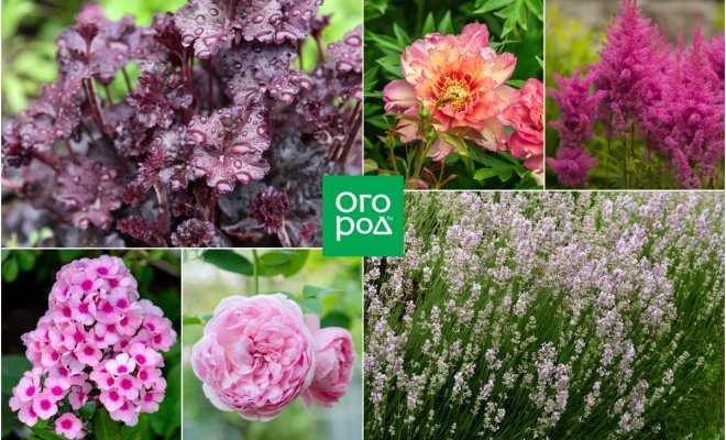 Есть множество сортовых вариаций с розовыми цветками. Мы взяли в свою композицию среднерослую гибридную астильбу Глория пурпуреа с малиновыми метелками и бронзовой листвой. А вам предлагаем выбрать на свой вкус – присмотритесь к сортам Виджинс, Ритм энд Блюз, Перкео, Пинк Лайтинг, Пич Блоссом, Юник Сильвер Пинк.