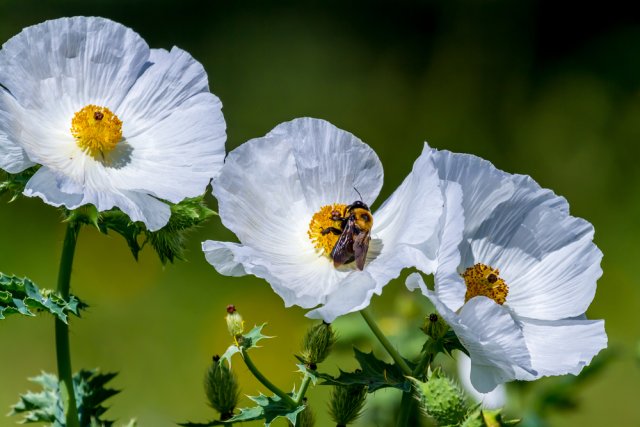 - аргемона белая – крупнее других видов, около 1 м высотой, с чашевидными белыми цветками диаметром до 6 см;