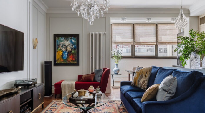 Владельцы просторной квартиры семья с двумя маленьким детьми: мальчиком и девочкой. К дизайнеру Ольге Лапейкиной они пришли с запросом на нейтральный интерьер в современном стиле. «Никакого золота, лепнины и обоев с вензелями», цитирует своих заказчиков Ольга. В процессе работы от этой концепции постепенно отходили, добавляли больше ярких элементов, не обошлось и без «примет» вечной классики, а также восточных ноток. В итоге получился функциональный и колоритный интерьер.