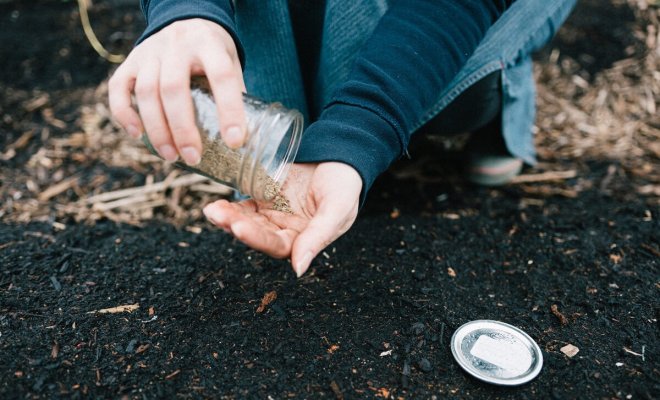 Семена высевайте в бороздки, когда температура опустится до 0°С и на почве образуется легкая корочка. Сверху засыпьте подготовленной заранее почвенной смесью и замульчируйте.