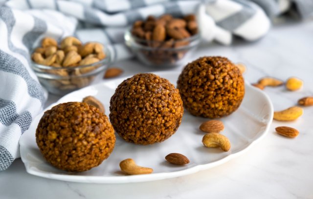 Орехи измельчите в крошку отдельно и отделите от их общей массы примерно две трети, пересыпав в отдельную посуду. Остальные орехи смешайте с измельченными сухофруктами в однородную массу. Сформируйте из нее шарики и обваляйте их в ореховой крошке. Отправьте на 2-3 часа в холодильник, а затем подавайте к столу.
