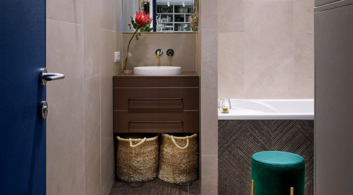 Есть два подхода к дизайну напольных корзин. Вы можете убрать ее с глаз (например, спрятать за дверцами хозяйственного шкафа, под раковиной или в нише). В этом случае внешний вид емкости не так важен. Либо, наоборот, ее можно сделать декоративным акцентом и поставить на видное место. Тогда цвет, материал и форма важны. Это может быть естественная красота плетения, привлекающий внимание контрастный узор или просто приятный цвет, который вписывается в общую палитру санузла.