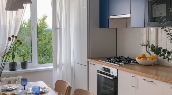 Квартиры хрущевской застройки многочисленны и хорошо узнаваемы: низкие потолки, маленькие комнаты, плохая шумоизоляция, крошечные санузлы и зона готовки. Именно последняя обычно вызывает самые большие трудности: из-за наличия газовой плиты объединить ее с гостиной, конечно, возможно, но сделать это намного труднее, чем в новостройке. Если же оставлять помещение в заданных границах, то разместить всю необходимую технику на нескольких квадратах становится почти непосильной задачей. И все-таки это реально! В статье расскажем, как оформить кухню в хрущевке с холодильником, и разберем варианты планировочных решений.