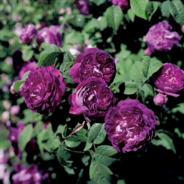 Одной из привилегий кардиналов был цвет их мантии. И розы этого сорта, обладающего многими мировыми наградами, не останутся незамеченными в любом саду благодаря великолепному насыщенному пурпуру своих густомахровых ярких цветков с бледным основанием. Сами цветки некрупные, 5-6 см в диаметре, шаровидные, собраны в кисти по 3-5 шт., с тонким, но отчетливым ароматом. Цветение однократное (с раннего лета), но длится примерно в течение двух месяцев.