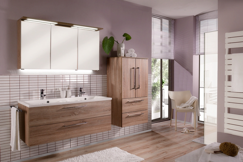 Смотрится деревянная мебель очень красиво. При правильном уходе и при эффективно работающей вентиляции в ванной комнате служить она будет очень долго. Но нужно быть готовым выложить за нее весьма немалую сумму.