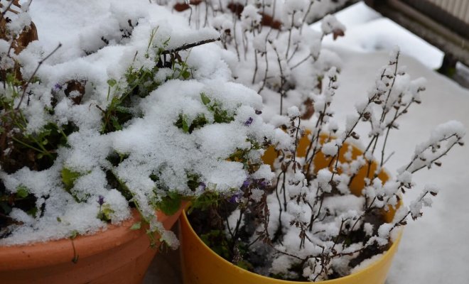 В отличие от сада, в контейнере небольшое количество земли, поэтому в сильные морозы она, а вместе с ней и корни могут промерзнуть полностью. Чтобы этого не случилось, горшки на зиму нужно утеплить мешковиной, пенопластом, поролоном и т.п. Причем укрыть нужно не только боковые стенки контейнера – между полом и горшком также должен находиться слой утеплителя. И последний шаг – замульчировать почву в горшке опилками или торфом. При такой подготовке к зиме вашим балконным растениям будет легче перенести морозы.
