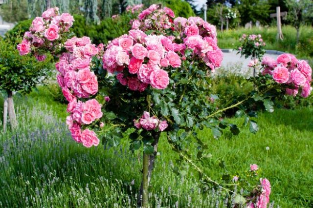 Роза на штамбе выглядит неописуемо красиво, хоть и потребует к себе определенного внимания.
