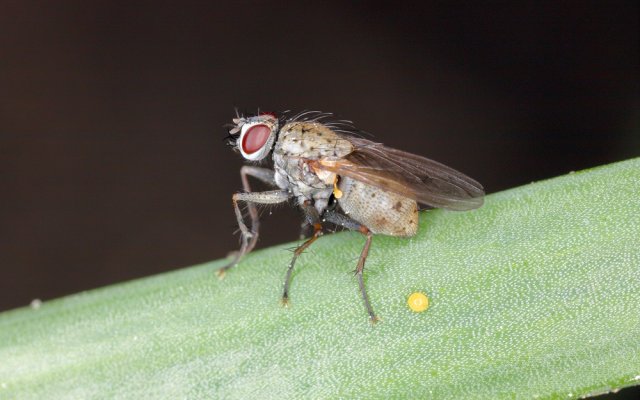 Сразу после вылета самка луковой мухи начинает откладку яиц. Размещает она их на листьях лука или чеснока либо в отверстия в почве возле этих растений, располагая рядами или небольшими кучками. Через несколько дней из яиц появляются опасные вредители луковых растений – личинки луковой мухи.