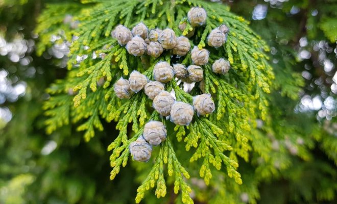 На постоянном ярком свету, при произрастании деревьев в сухой и бедной почве шишек обычно образуется гораздо больше. То есть одиночное, хорошо освещенное со всех сторон дерево, с большей вероятностью «порадует» вас обилием шишек, чем плотно сидящие, перекрывающие друг друга туи в живой изгороди. Значительно меньше шишек всегда образуется на западной стороне и в нижних затененных частях кроны.