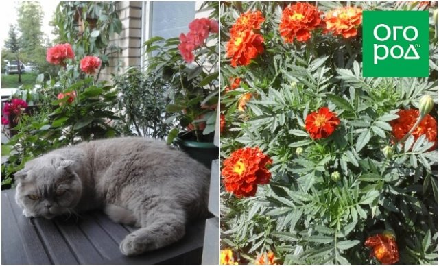 Методом проб и ошибок были подобраны растения для таких условий. Ирина остановилась на пеларгониях, невысоких сортах тагетеса (бархатцев) и однолетнем гибридном бальзамине, которые покупала уже цветущими.
