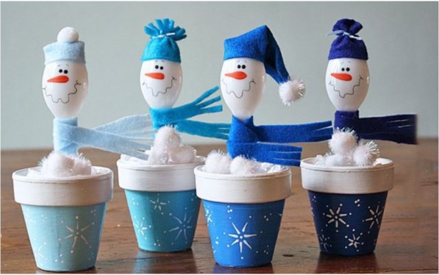 А теперь расскажем, как сделать снеговиков из пластиковых ложек.