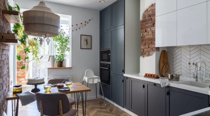 Эту квартиру дизайнер Виктория Вишневская со своим супругом приобрели 5 лет назад: на тот момент семейная пара работала в офисе, дома проводила немного времени: вечера и выходные. Семья распланировала квартиру так, как было удобно им, сделали изолированную спальню, оставили достаточно просторную кухню, оформили гостиную зону, чтобы можно было принимать гостей. Через несколько лет в семье появился маленький ребенок и Виктория приспособила небольшую площадь для комфортной жизни уже втроем. Скорее, даже вчетвером в семье живет еще собака породы бигль.
