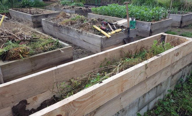 Чаще всего теплые грядки осенью под зиму делают из досок. Во-первых, они практически всегда есть в хозяйстве, во-вторых, они недороги, в-третьих, этот материал экологичен и хорошо вписывается в дизайн большинства дачных участков. Правда, доски для коробов обязательно нужно обрабатывать пропиткой от плесени и гнили, иначе хватит такой гряды всего на 3-5 сезонов.
