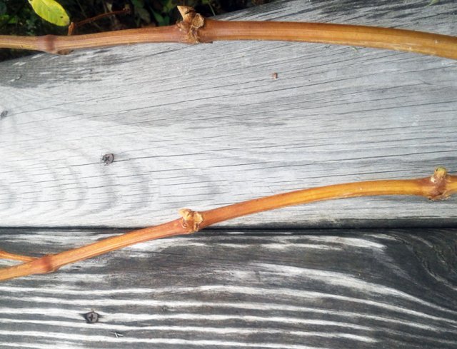 Для того чтобы омолодить куст, мы отрежем верхнюю часть рукава с более слабыми лозами, которые задерживают развитие более сильных лоз, расположенных ниже. И вот как выглядит рукав после обрезки.