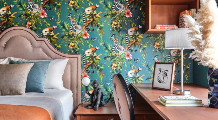 Работа над этим интерьером началась с фрагмента обоев, которые попросили использовать заказчики в комнате их дочери. Дизайнер ухватила мысль и создала интерьер, который поражает принтами, цветом и красивым сочетанием несочетаемого.