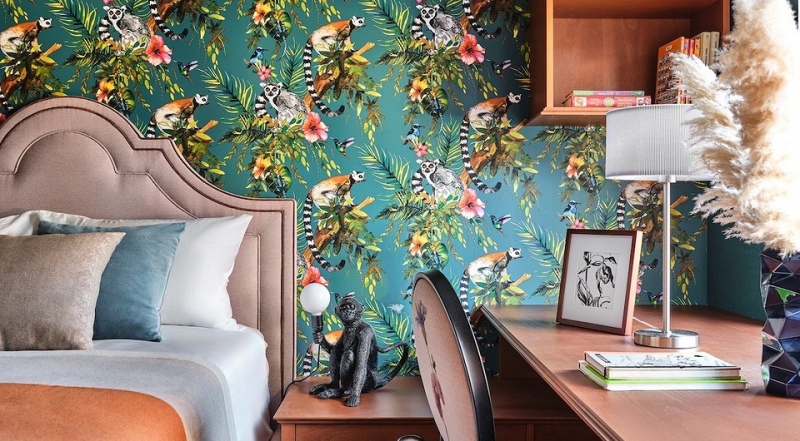 И, конечно, главную роль в отделке стен играют обои. В детской дочери использовали именно те обои, с которыми заказчики «пришли» к дизайнеру от марки Holden Decor, где на зеленом фоне распустились цветы и разместились лемуры. Их тоже скомбинировали со старинным кирпичом.
