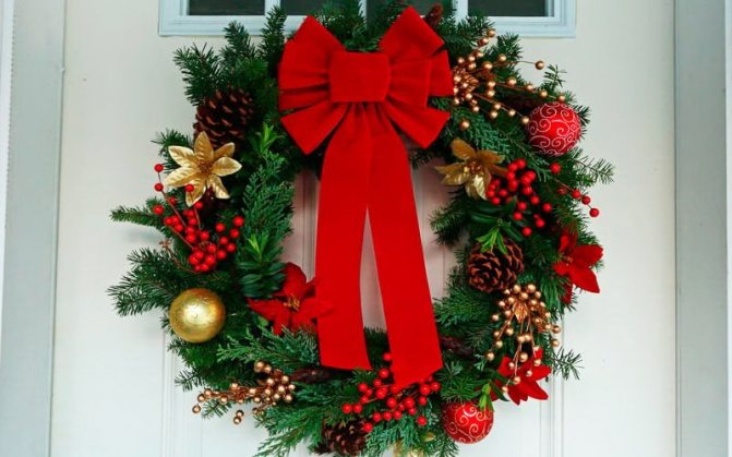 Маленький совет – если в доме есть дети, повесьте рядом с венком небольшие детские (безопасные) ножницы. Ими можно воспользоваться, если захочется конфет.