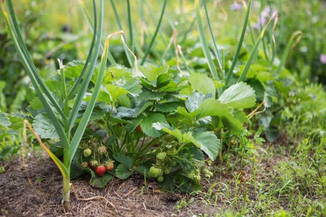 На этом этапе неплохо приступить и к посадке растений-компаньонов. Например, размещать лук и шнитт-лук под деревьями, чтобы предотвратить появление вредителей и развитие болезней. Под плодовыми деревьями полезно будет посадить цветы, привлекающие насекомых-опылителей.