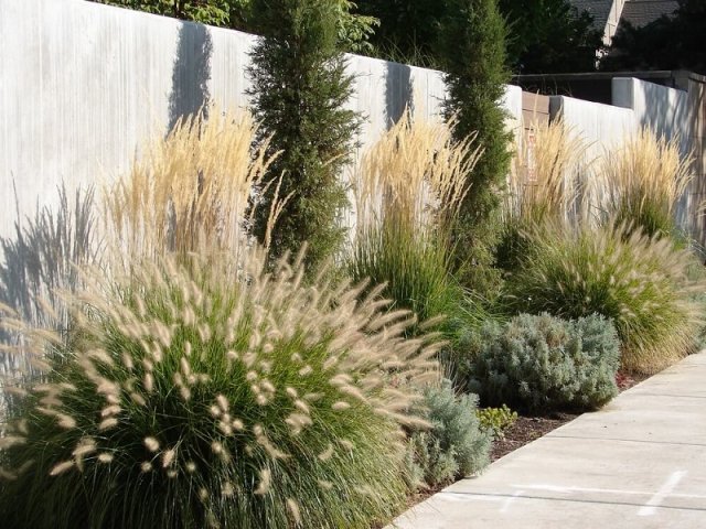 Молиния не закроет собой никакую картину, а только придаст ей загадочности и воздушности. Если вейник своей вертикальной статью похож на оловянного солдатика, то молиния – нежная и легкая, как балерина.