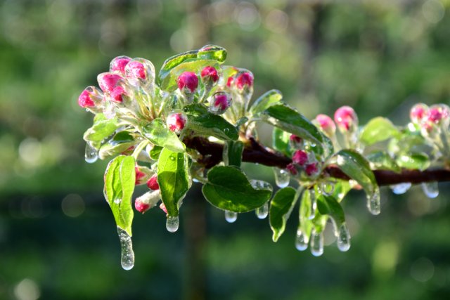 Весенние заморозки, которые нередко случаются в период цветения, могут погубить цветки и завязи плодовых деревьев. Даже кратковременное понижение температуры за пределы отметок –1,5-2°C способно привести к гибели цветов и, как следствие, к отсутствию плодов. Завязи погибают и вовсе при температуре ниже –1°C.