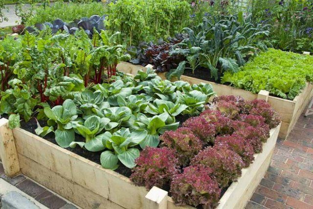 Плотность посадок на высокой грядке должна быть в два раза выше, чем на обычной. Так растениям легче бороться с сорняками