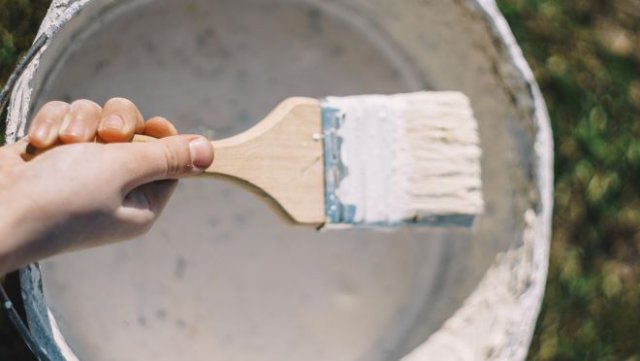 Можно использовать как готовый покупной состав для побелки сада, так и приготовить смесь самостоятельно. Для этого разведите в воде 2 кг гашеной извести (пушонки), 300 г медного купороса сначала растворите в небольшом количестве горячей воды, а затем вылейте в общую емкость, добавьте 1 ст.л. карболовой кислоты (отпугнет мышей и зайцев), доведите объем до 10 л и тщательно перемешайте компоненты, чтобы получилась однородная масса, похожая по консистенции на густую сметану.