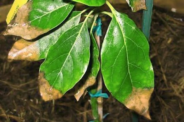 Пожелтение листьев может вызвать и несвоевременное обильное опрыскивание растений (особенно при невысокой температуре воздуха), а пожелтение и высыхание кончиков листьев – жесткая поливочная вода (еще одним признаком этой проблемы может служить беловатый налет на поверхности почвы).