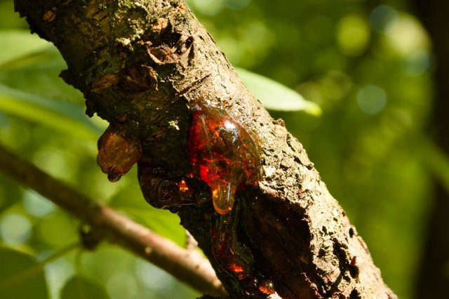 Камедетечением страдает большинство косточковых деревьев. Но чаще всего оно происходит у вишен и черешен. Гуммоз, так еще называют выделение камеди, может ослабить дерево. Поэтому необходимо определить причины его возникновения и вовремя принять меры.