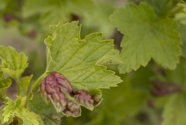 Длина белых и красных личинок галлицы, наносящих вред непосредственно листьям, не превышает 1,5 мм, из-за чего обнаружить их бывает крайне сложно. В результате действий вредителя молодые листочки смородины даже не успевают раскрыться, а просто усыхают.