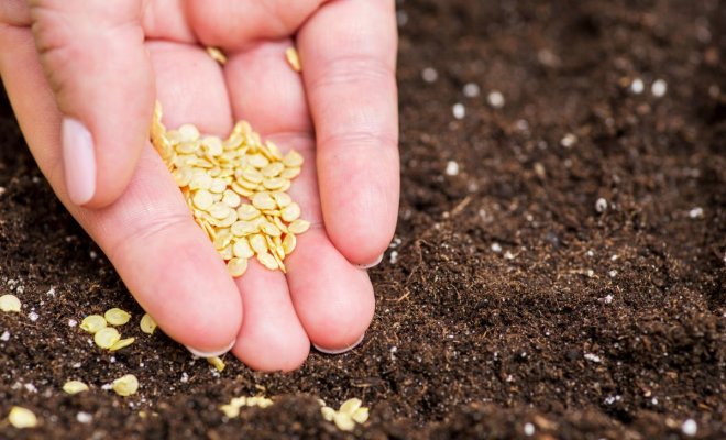 Увлажните грунт, сделайте в нем небольшие углубления (примерно на 1-1,5 см) на расстоянии 3-5 см друг от друга, разложите в них семена и сверху присыпьте сверху землей, а затем сбрызните теплой водой из пульверизатора.