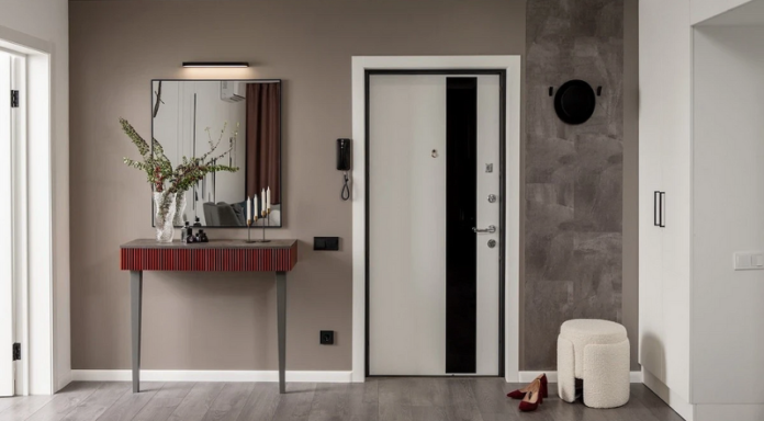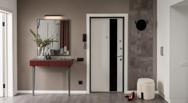 Помните, что входная дверь тоже является элементом прихожей, коридор хорошо просматривается из других комнат. Выбирайте отделочные материалы и мебель, которые не будут спорить с остальным интерьером.