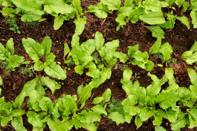 - Прореживание свеклы. Каждое семя-клубочек свеклы образует несколько всходов. Вырванные растения отсадите на свободные места или же по откосам грядок. Удачное место для отсадки – бока луковых грядок. Когда молодая свекла приживется и пойдет в рост, лук уже будет готов к уборке. Для отсаживания годятся растения не выше 10 см. Переросшая рассада даст плоды неправильной формы.