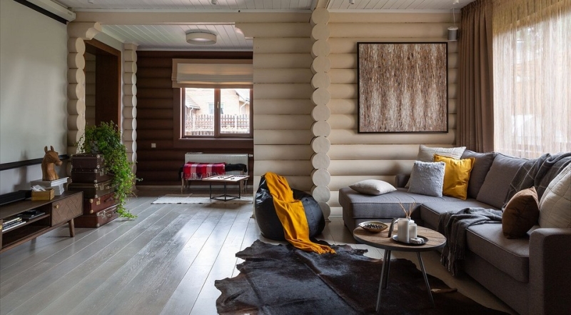 «Мебель подбиралась с учетом характера заказчика. Так, в гостиной появился едва заметный дух сафари дань многочисленным путешествиям хозяина: шкура на полу, мебель «в колониальном стиле», тумба для цветов из настоящих дорожных чемоданов», рассказывают авторы проекта.