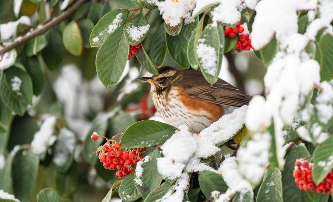 Одним из лучших источников зимней пищи является живая изгородь с ягодами, состоящая из таких растений как терновник, калина, боярышник, бузина и шиповник.